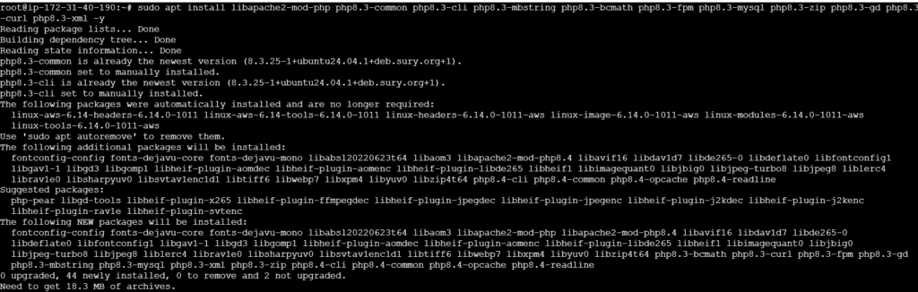 #sudo apt install libapache2-mod-php php8.3-common php8.3-cli php8.3-mbstring php8.3-bcmath php8.3-fpm php8.3-mysql php8.3-zip php8.3-gd php8.3-curl php8.3-xml -y