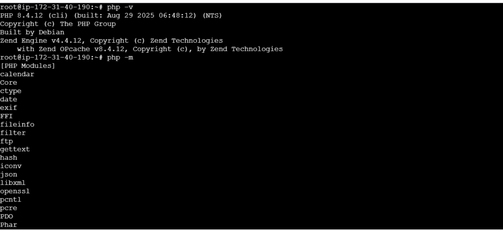 Once the installation is complete, you can verify which PHP modules are installed by running the following command: