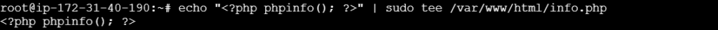 # echo “<?php phpinfo(); ?>” | sudo tee /var/www/html/info.php