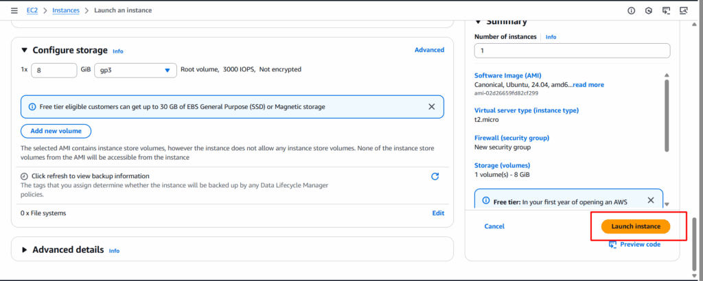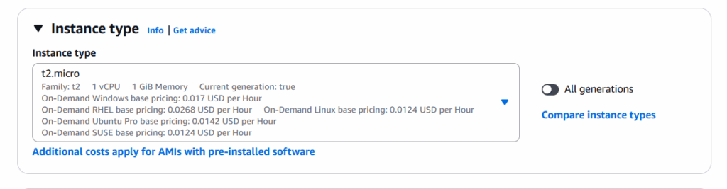 - t2.micro / t3.micro → Free tier eligible.
