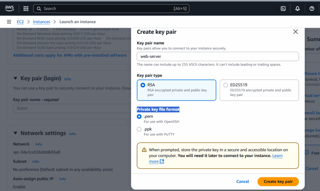 Under Key Pair (login):