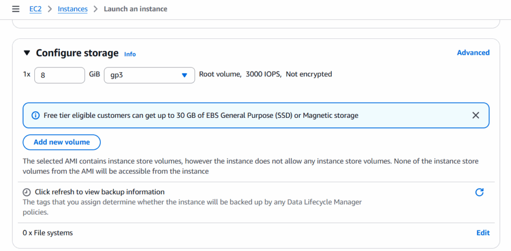 Default: 8 GB EBS Volume.
